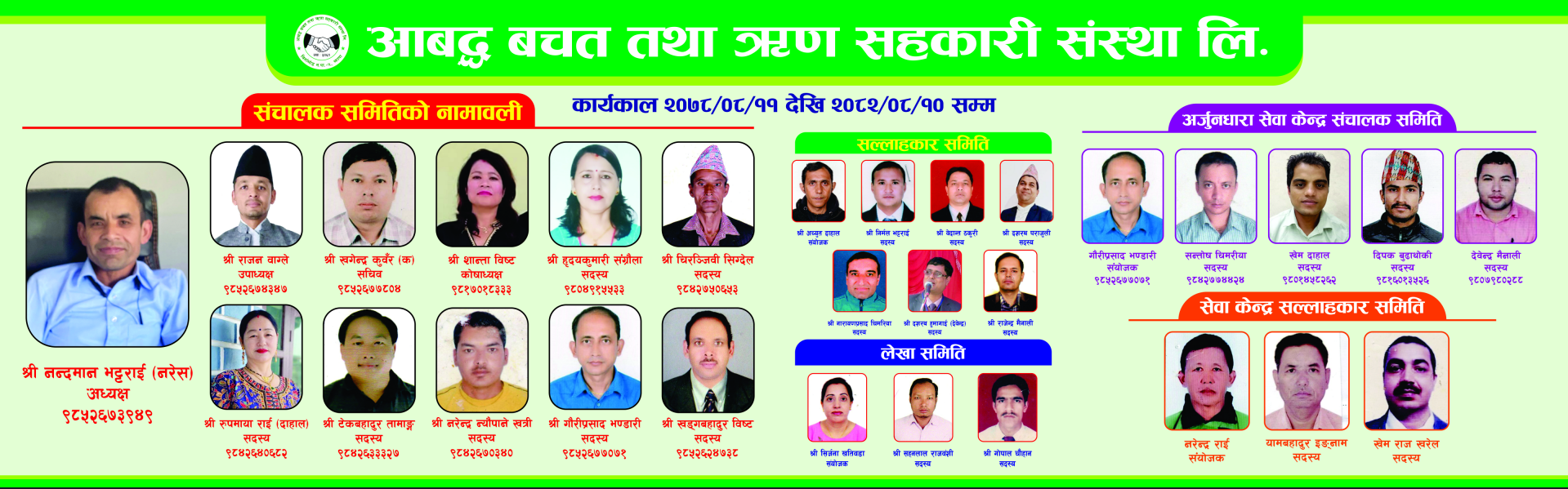 ‘वित्तीय आवश्यकताको समाधान सहितको व्यवसायिक सहकारी’ बनाउने परिकल्पना लिएर २०६९ सालदेखि निरन्तर रुपमा बचत, ऋण, तथा विप्रेषण लगायतका सेवाहरुमार्फत सदस्यहरुको आर्थिक, सामाजिक र साँस्कृतिक स्तर उकास्न प्रयत्न गरिरहेको यस आबद्ध बचत तथा ऋण सहकारी संस्थाको वेवसाईटमा यहाँहरुलाई हार्दिक स्वागत गर्दछौं। संस्थाको सेवा सुविधाका साथै आर्थिक तथा अन्य गतिविधिहरुको सूचना तथा जानकारीहरु सदस्यमाझ प्रविधिको प्रयोगमार्फत छिटो, सरल र सहजरुपमा उपलब्ध गराउने उद्धेश्यका साथ विकास गरिएको यस वेवसाईटमा यहाँहरुबाट रचनात्मक सल्लाह तथा सुझावहरु प्राप्त हुने अपेक्षा गर्दै संस्थागत विकासमा ऐक्यवद्धता प्रकट गरिदिनुहुन सम्पूर्ण सदस्य तथा शुभचिन्तकहरुमा हार्दिक अनुरोध गर्दछौं। धन्यवाद।